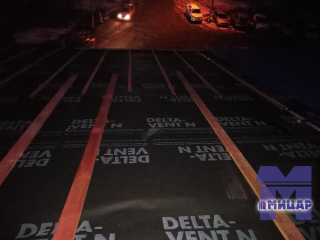 Это ключевой элемент, от которого зависит успех всего монтажа крыши. Мы используем высокотехнологичную мембрану DELTA, которая укладывается непосредственно на утеплитель. Ее задачи: защита от подкровельного конденсата и внешней влаги, а главное — беспрепятственный вывод пара из утеплителя.